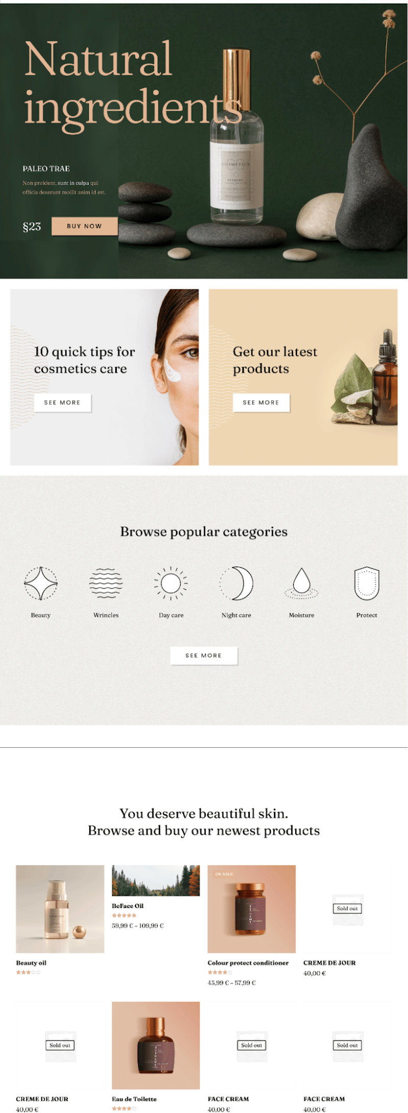 - If you need a simple online store with the WooCommerce look and feel by default, without any advanced design or options, then go with Storefront.