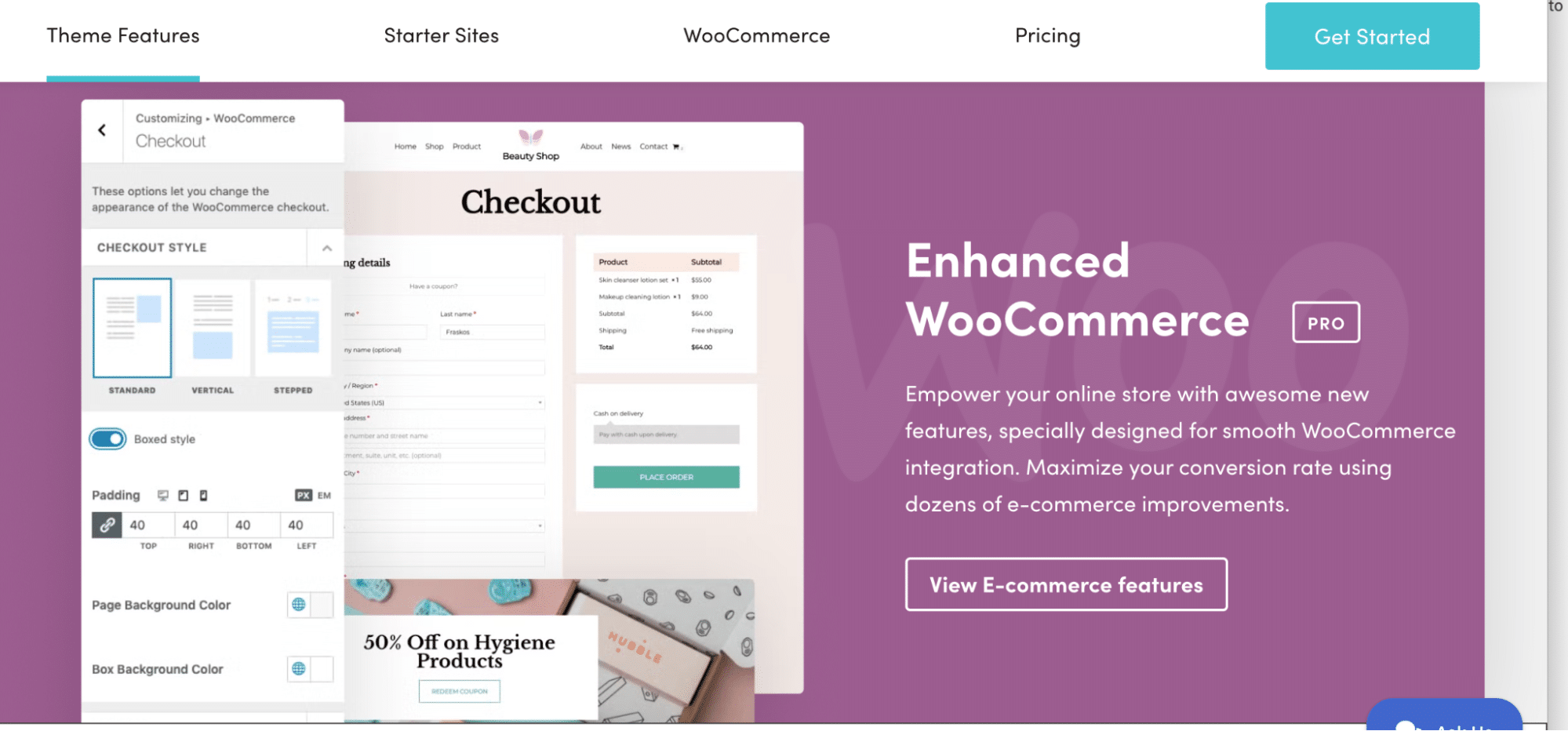 Astra is one of the best WooCommerce WordPress themes due to its lightweight code, user-friendly interface, and thousands of starter templates for your next shop. The premium add-ons for WooCommerce enable you to create a custom payment page, add an advanced product gallery, filters, and unlimited scrolling, allowing you to build a site similar to Pinterest.